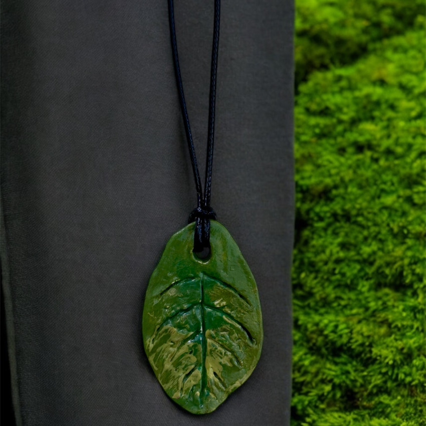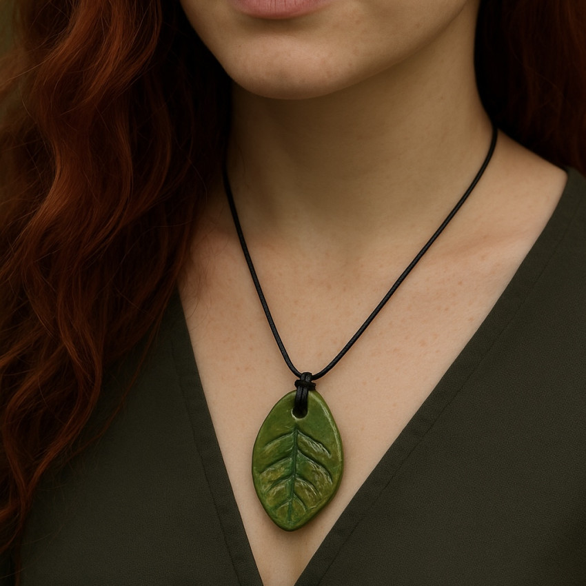Нежният зелен цвят носи усещане за свежест, живот и естествена красота. Всяка висулка е уникална, моделирана и оцветена на ръка, което я прави малко произведение на изкуството.
