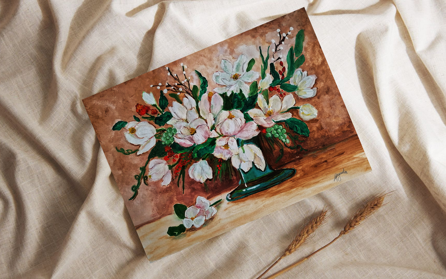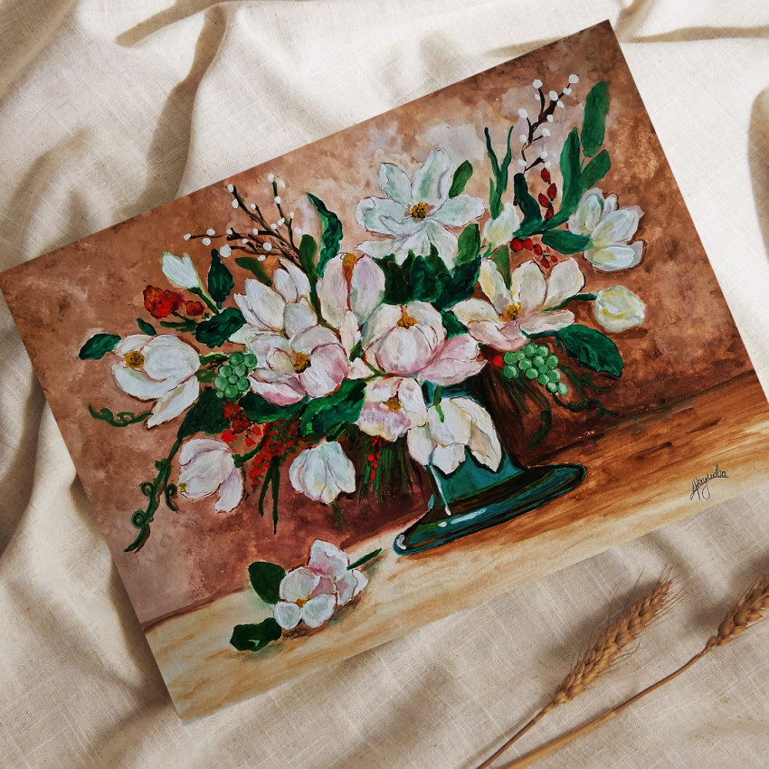 Това е оригинална картина, рисувана с гваш бои върху акварелна хартия. Вдъхновена от уюта и топлината на дома.